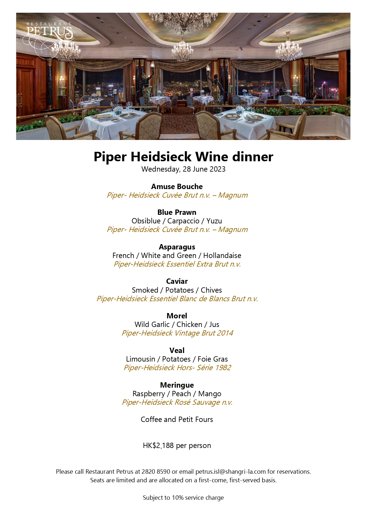 Bookings will be managed by Petrus: T: 2820 8590 or email petrus.isl@shangri-la.com